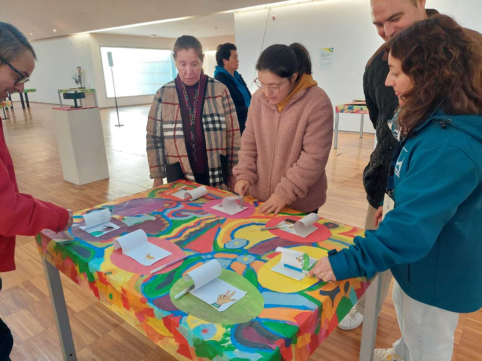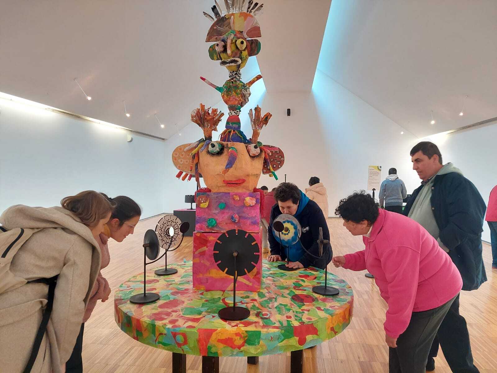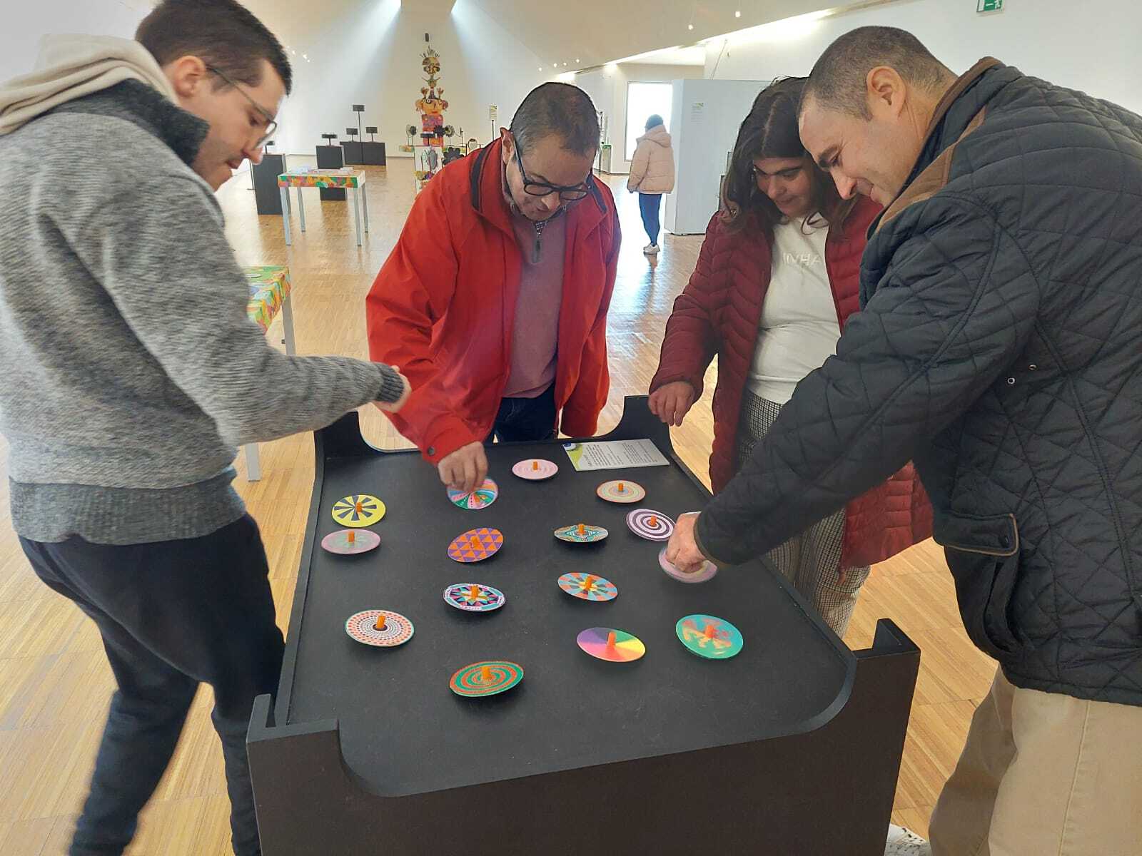 Sobre o mote inspirador “Aprende-se fazendo e faz-se brincando” fomos envolvidos na Exposição, esta interativa, cheia de cor, movimento e toque, que nos fazia viajar no tempo através do pião e sonhar com as histórias de outrora onde surgem dragões e seres imaginários.