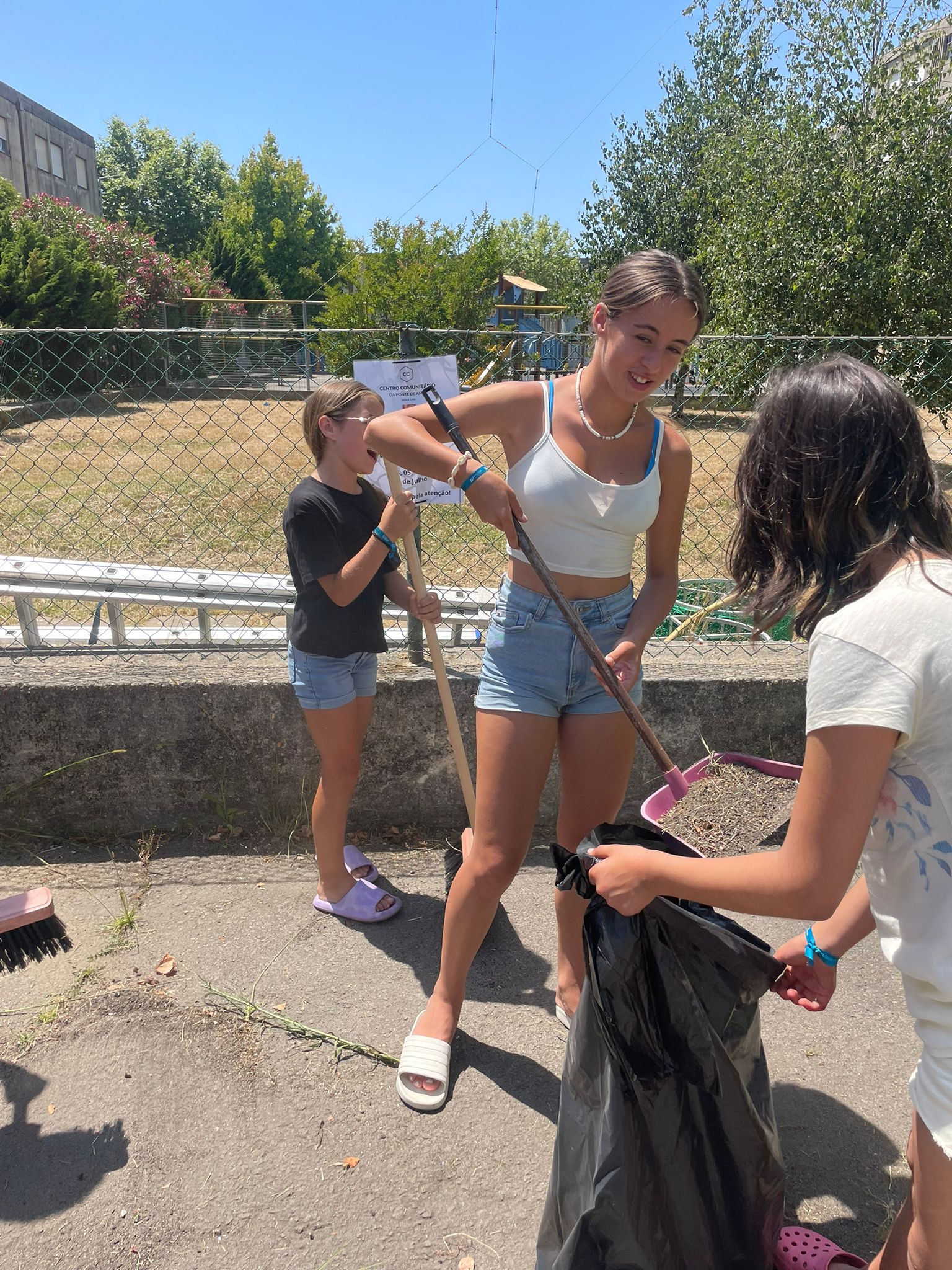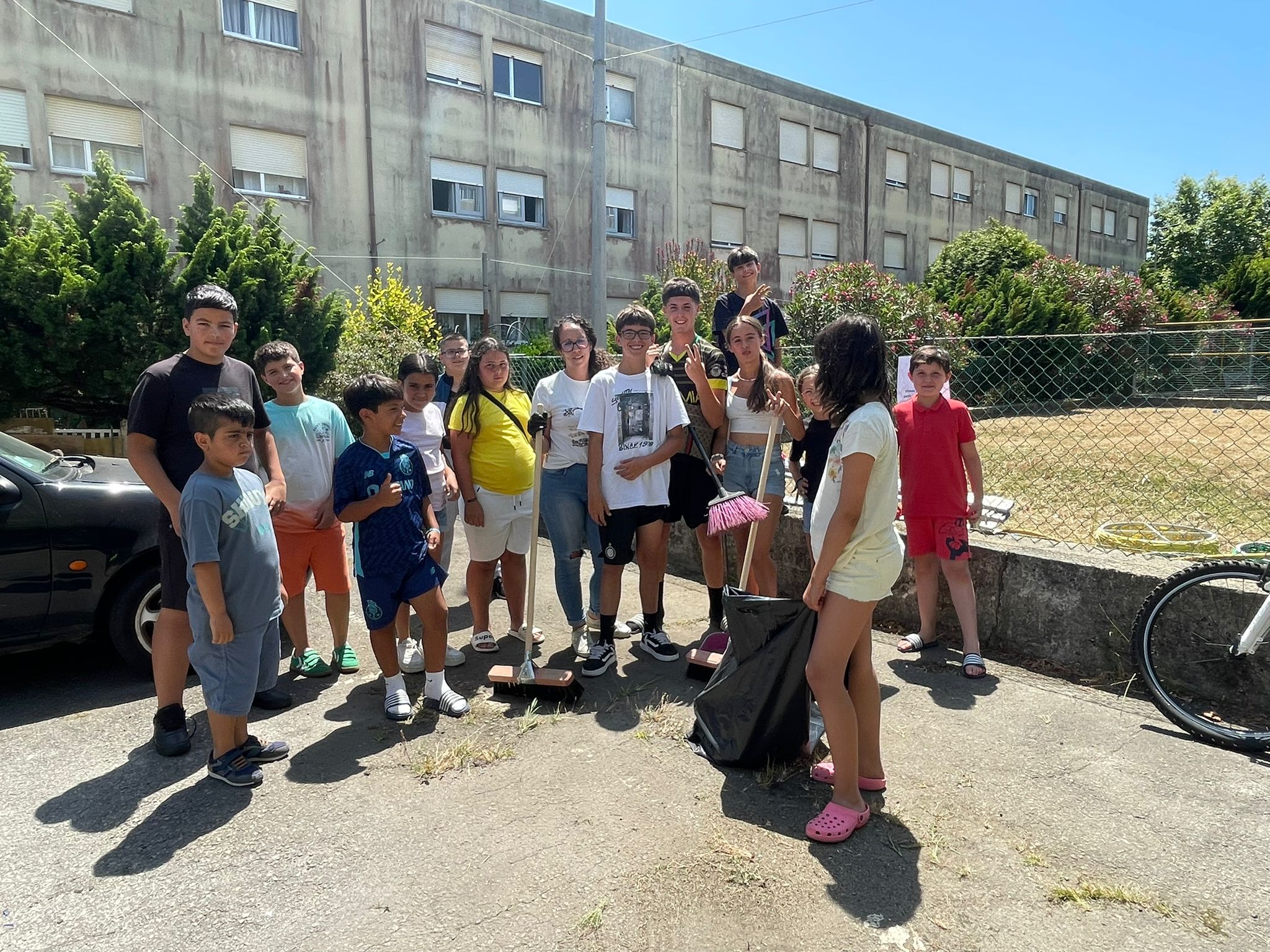 As crianças e jovens arregaçaram as mangas e juntaram-se para ajudar na limpeza e preparação do recinto, mostrando um verdadeiro espírito de comunidade!
