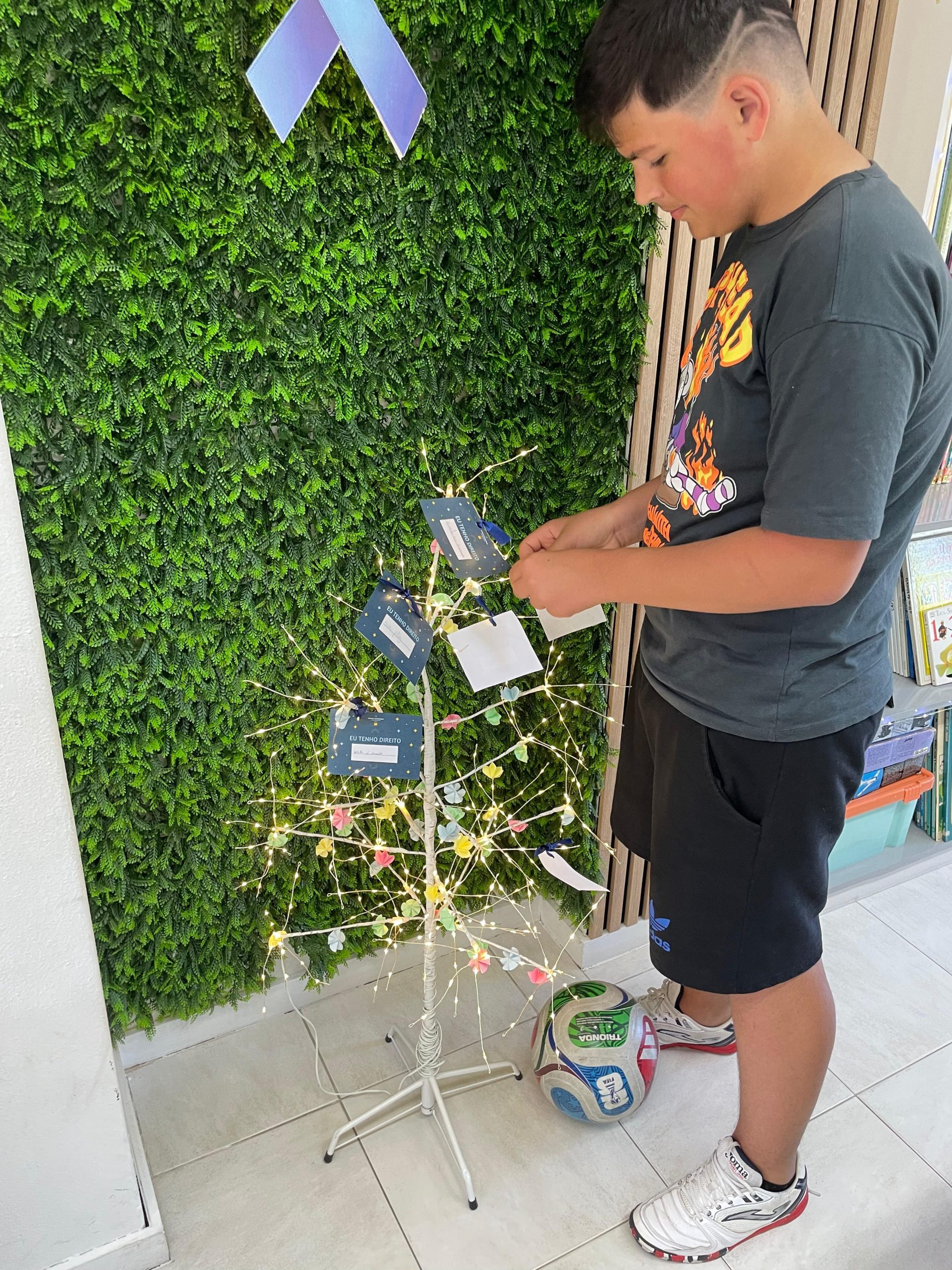 crianças, onde cada participante escreveu um direito que considera essencial, dando vida à nossa “Árvore dos Direitos”.
