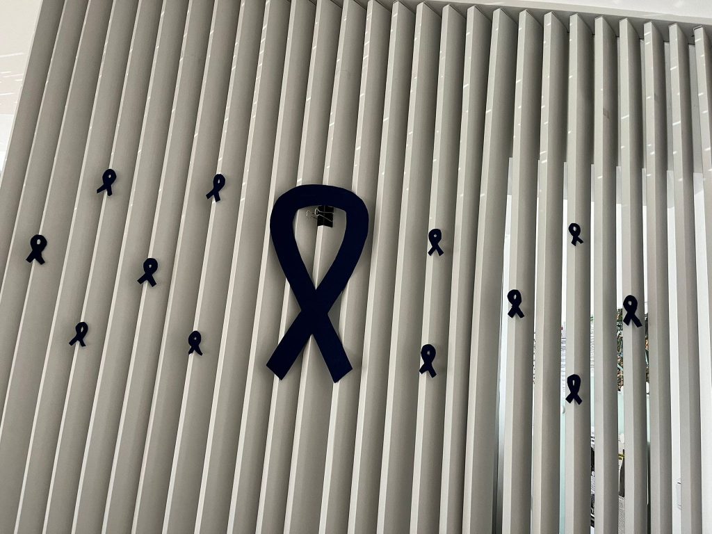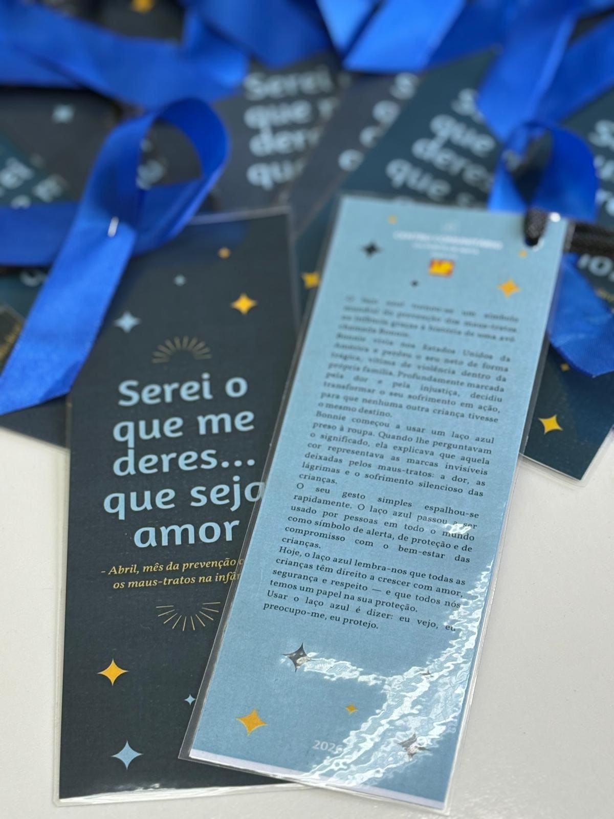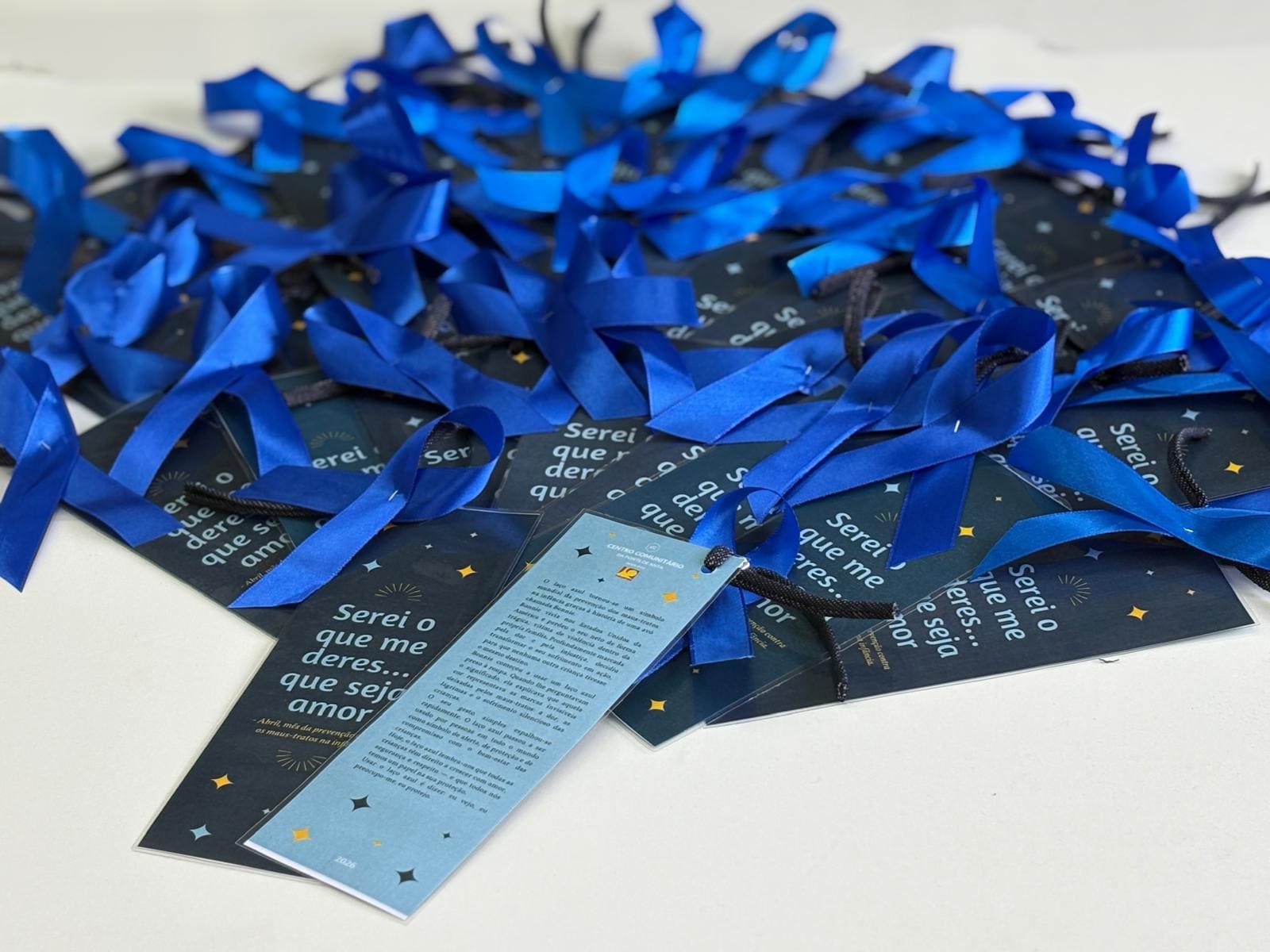 levando esta mensagem também às famílias, através da distribuição de laços azuis.