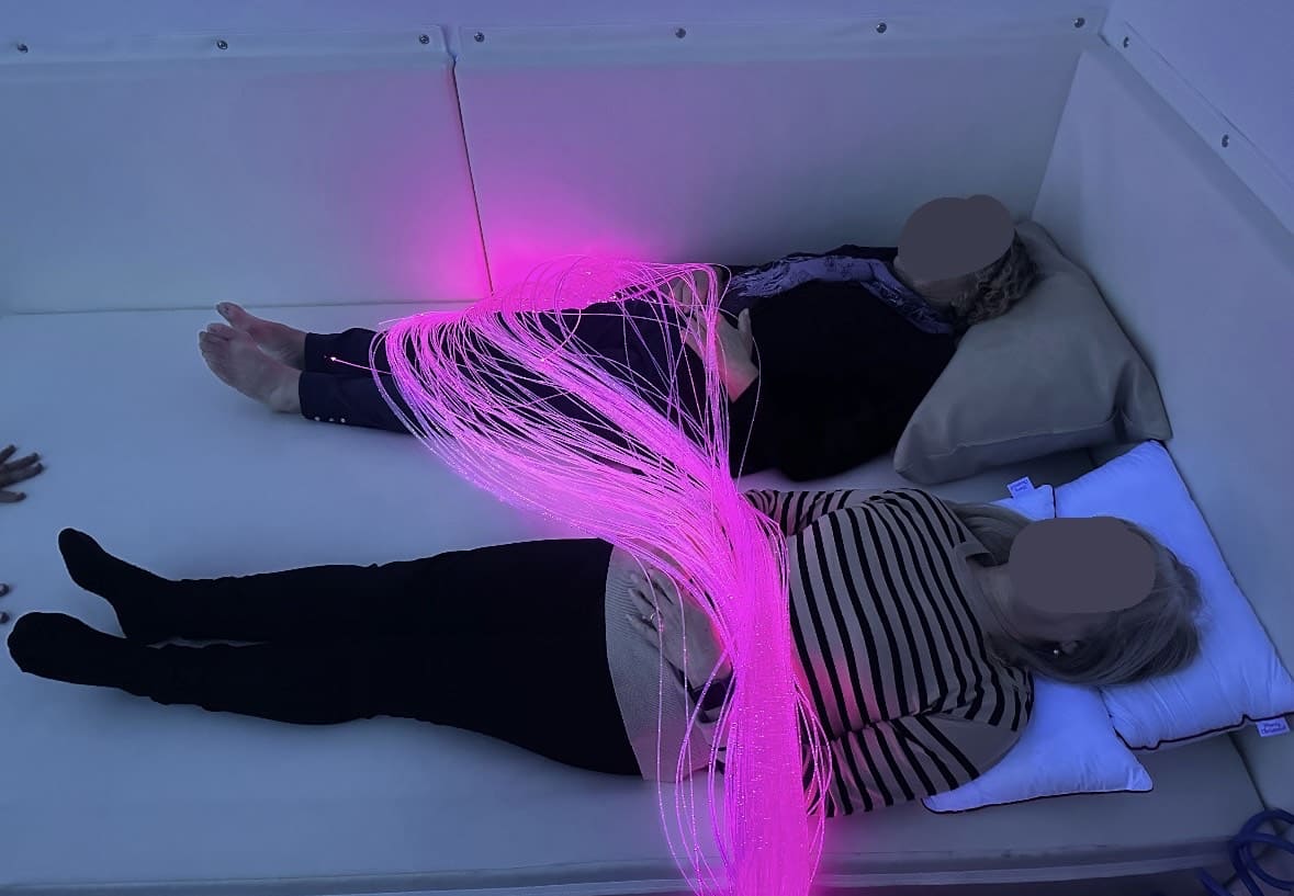 A sessão terminou com uma atividade sensorial dirigida às cuidadoras presentes que, pelas suas vivências pessoais, beneficiaram de um momento profundo de relaxamento.